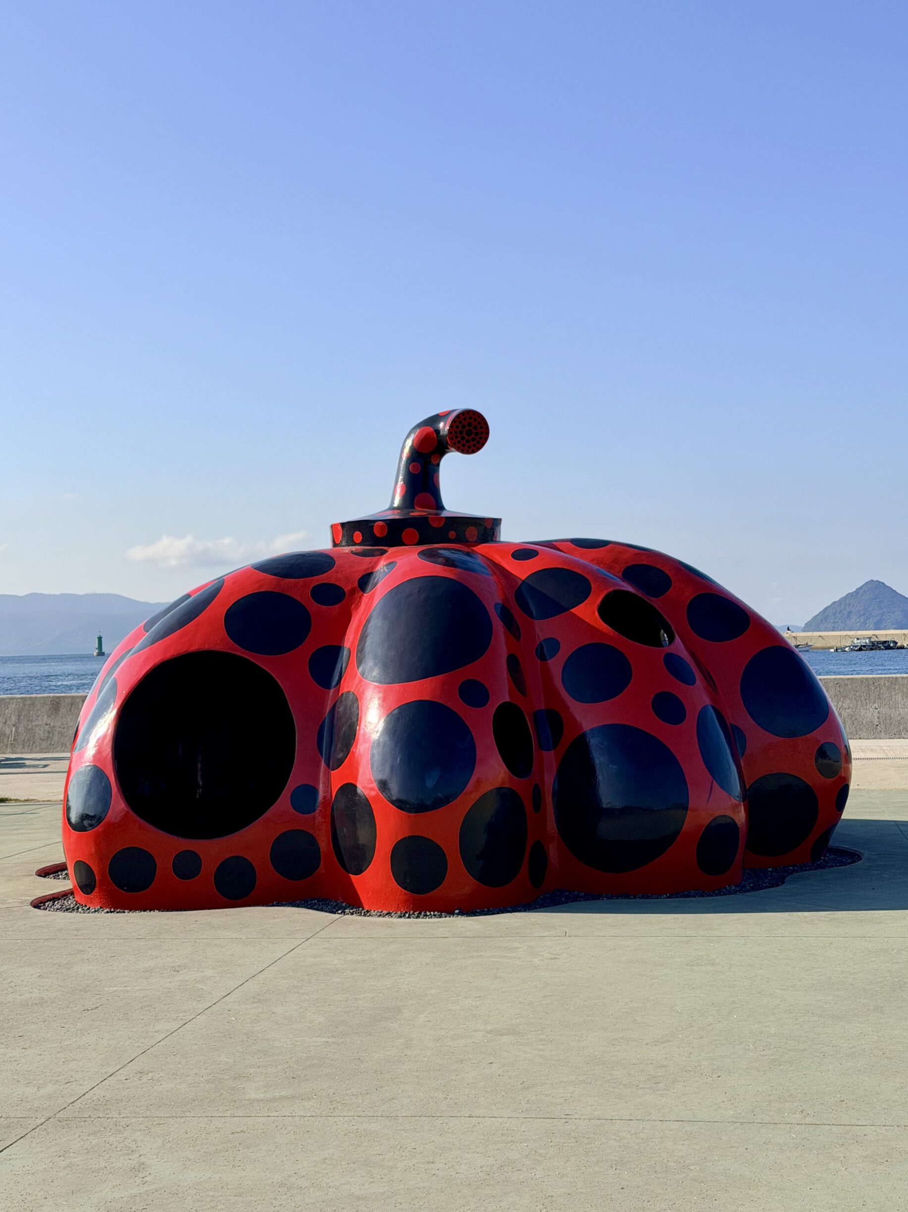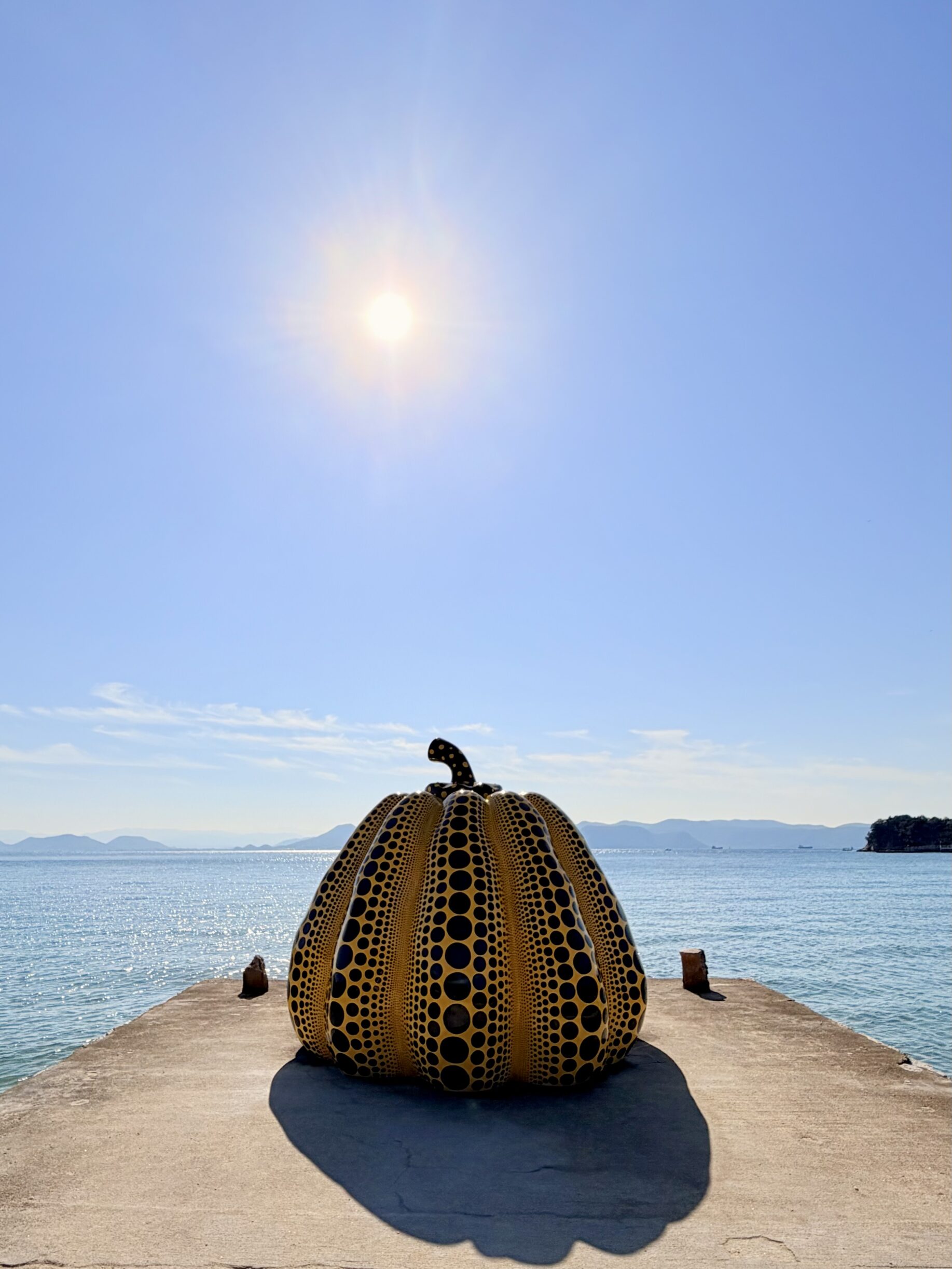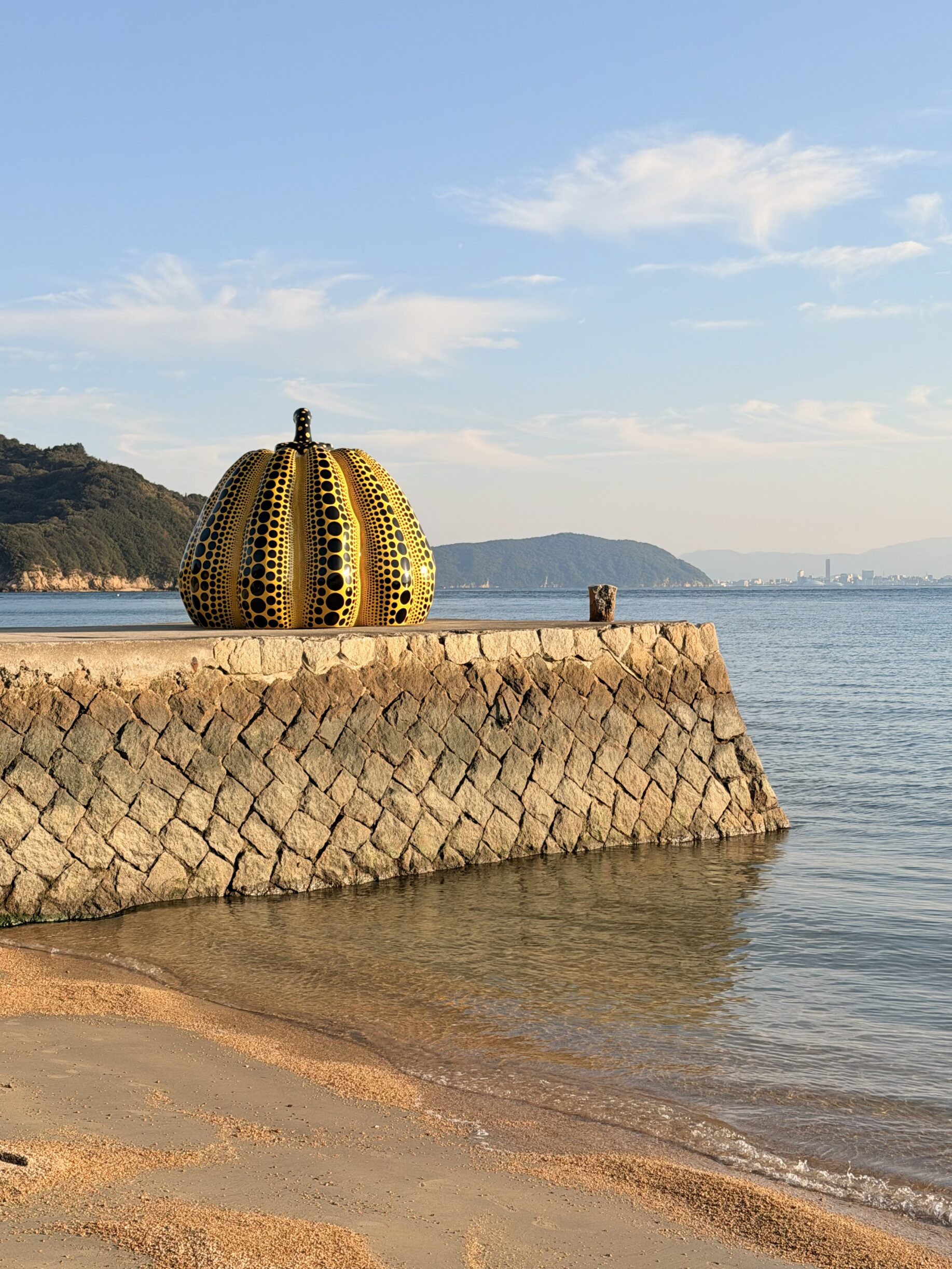 Von dort fuhren wir weiter nach Tsutsuji so. Dort gab es zuerst ein fantastisches Sashimi und dann natürlich einen Besuch beim gelben Kürbis von Yayoi Kusama.