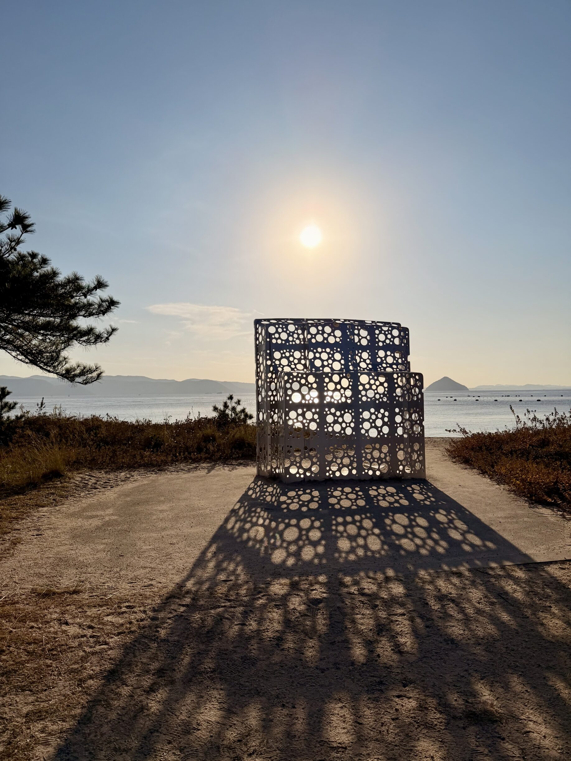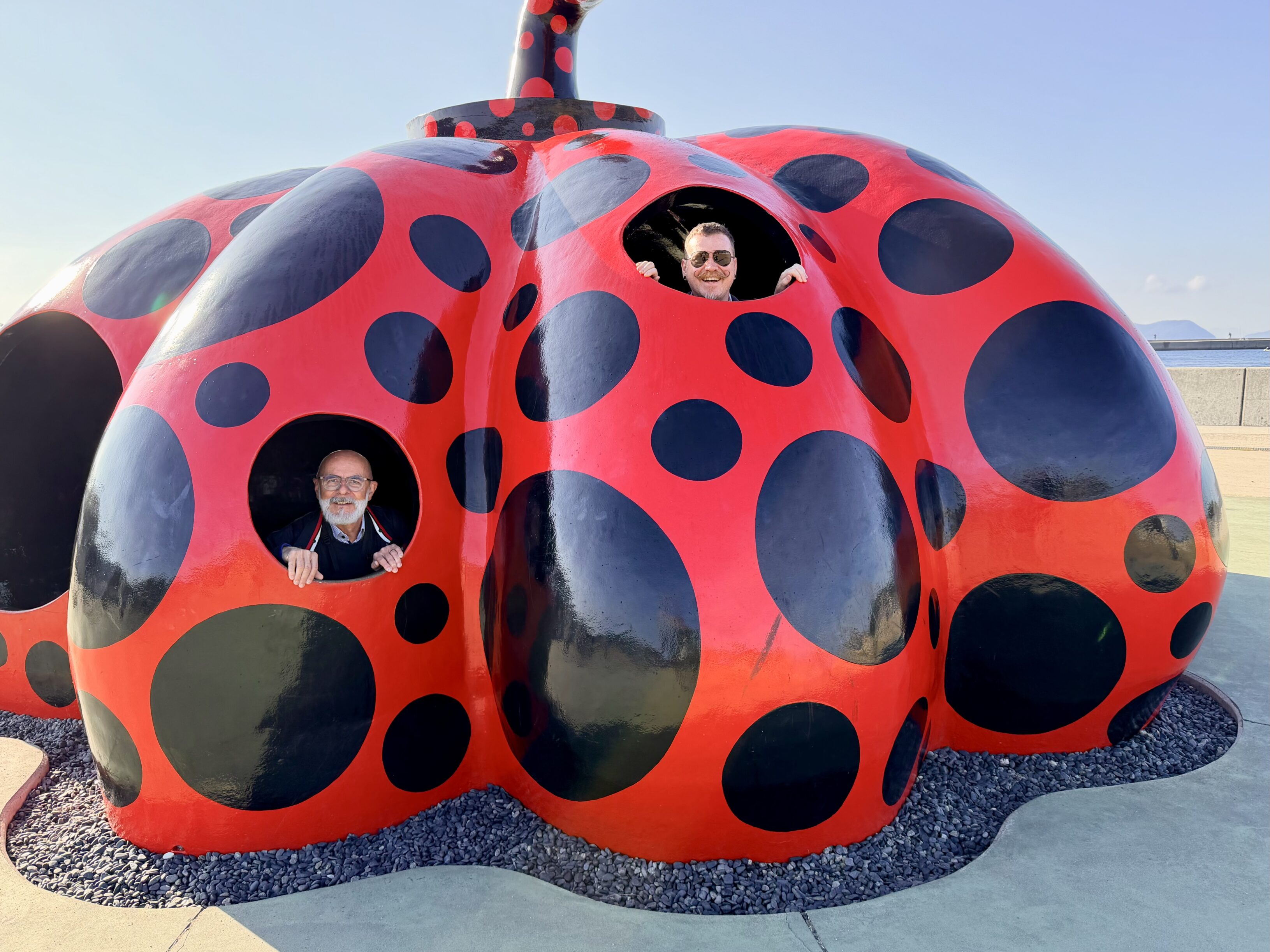 Zum Abschluss besuchten wir das Benesse Art Museum. Ebenfalls beeindruckend. Teilweise stehen die Kunstwerke im Aussenbereich und wirken damit noch intensiver. Fritz und ich haben zusammen sicher drölfzigtausend Fotos gemacht. Auch weil das Wetter heute wieder unglaublich schön war.