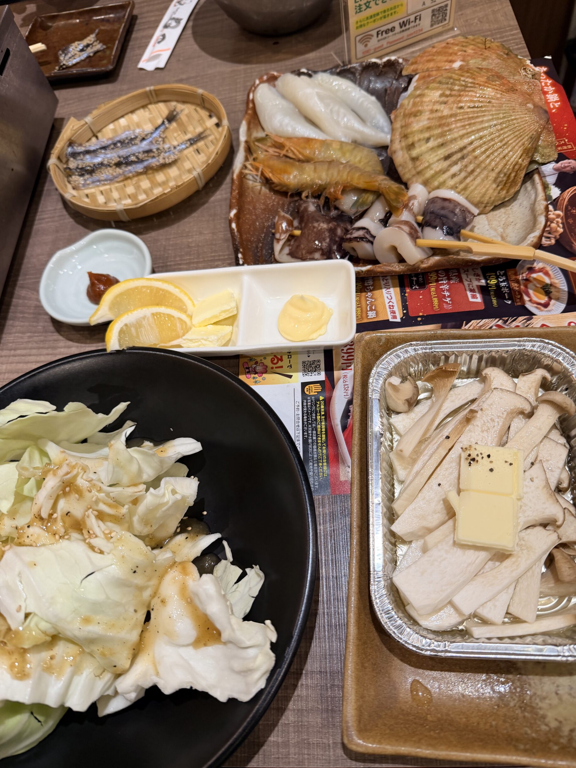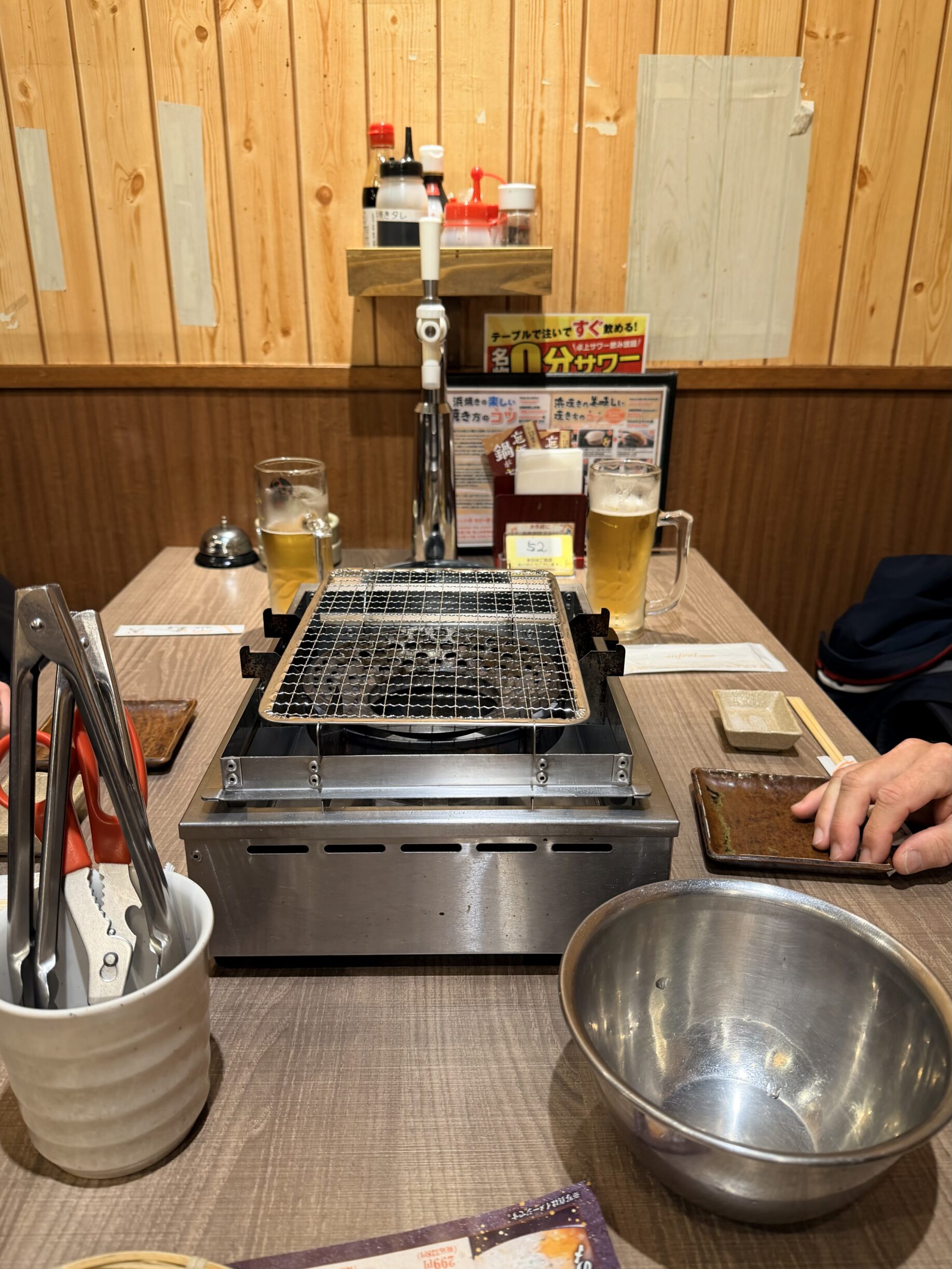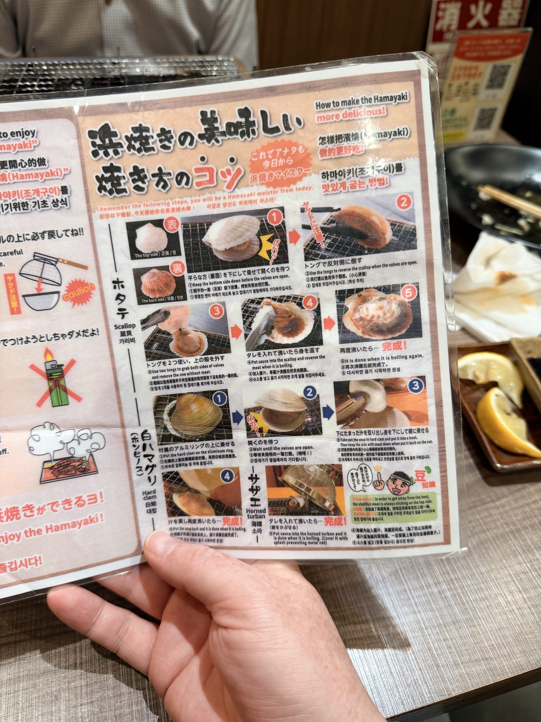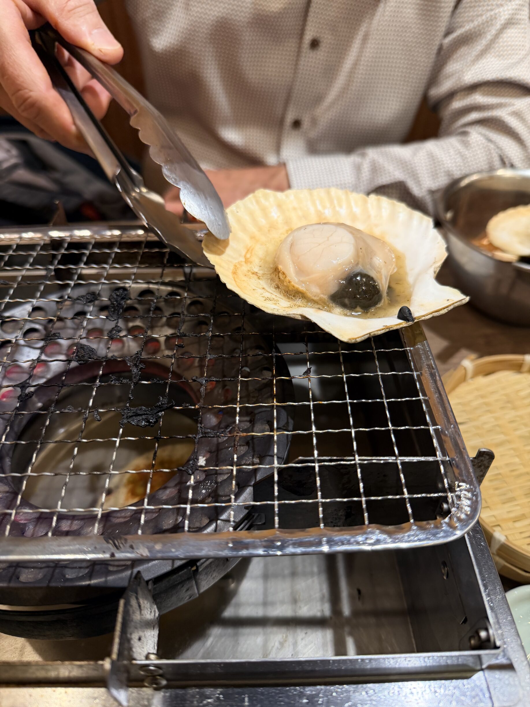 Der Tag war heute einfach nur zum Abschmusen. Nach dem Verabschieden gingen wir noch in ein Hamayaki Restaurant. Da grillt man sein Essen nämlich selbst. Also theoretisch. Praktisch haben wir anfangs nichts kapiert und einfach nach Intuition oder von den Leuten am Nebentisch abgeschaut. Das Highlight war das Grillen der Jakobsmuschel. Fritz hat dem Nachbarn jeden Schritt synchron nachgemacht und es ist alles super gelungen. Kaum waren wir fertig, fanden wir plötzlich die Bedienungsanleitung am Tisch. Wir haben so gelacht. haha