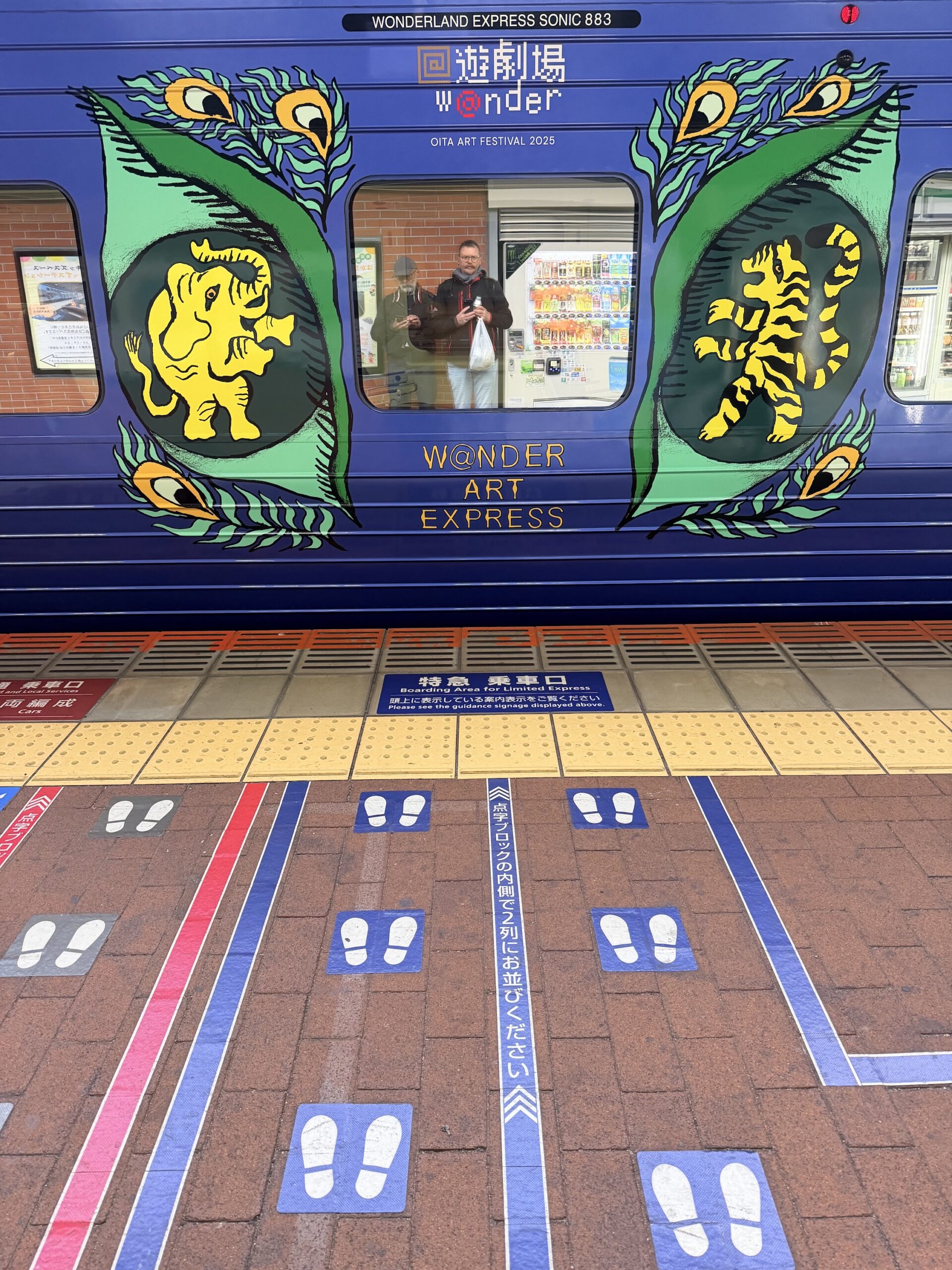 Unser Wecker hat schon um 6:30 Uhr gescheppert bzw. vibriert, damit uns niemand aus den Kapseln killt. Kurz wach werden, Handgepäck schultern, Snacks am Bahnhof Hakata holen und dann um 8:12 Uhr in den Limited Express Relay Kamome Richtung Takeo-Onsen. Klingt aufregen, aber ist wie eine Fahrt mit dem Railjet über den Semmering bzw. durch den Raum Bruck an der Leith. Also nix zu sehen, recht langsam und fad. haha