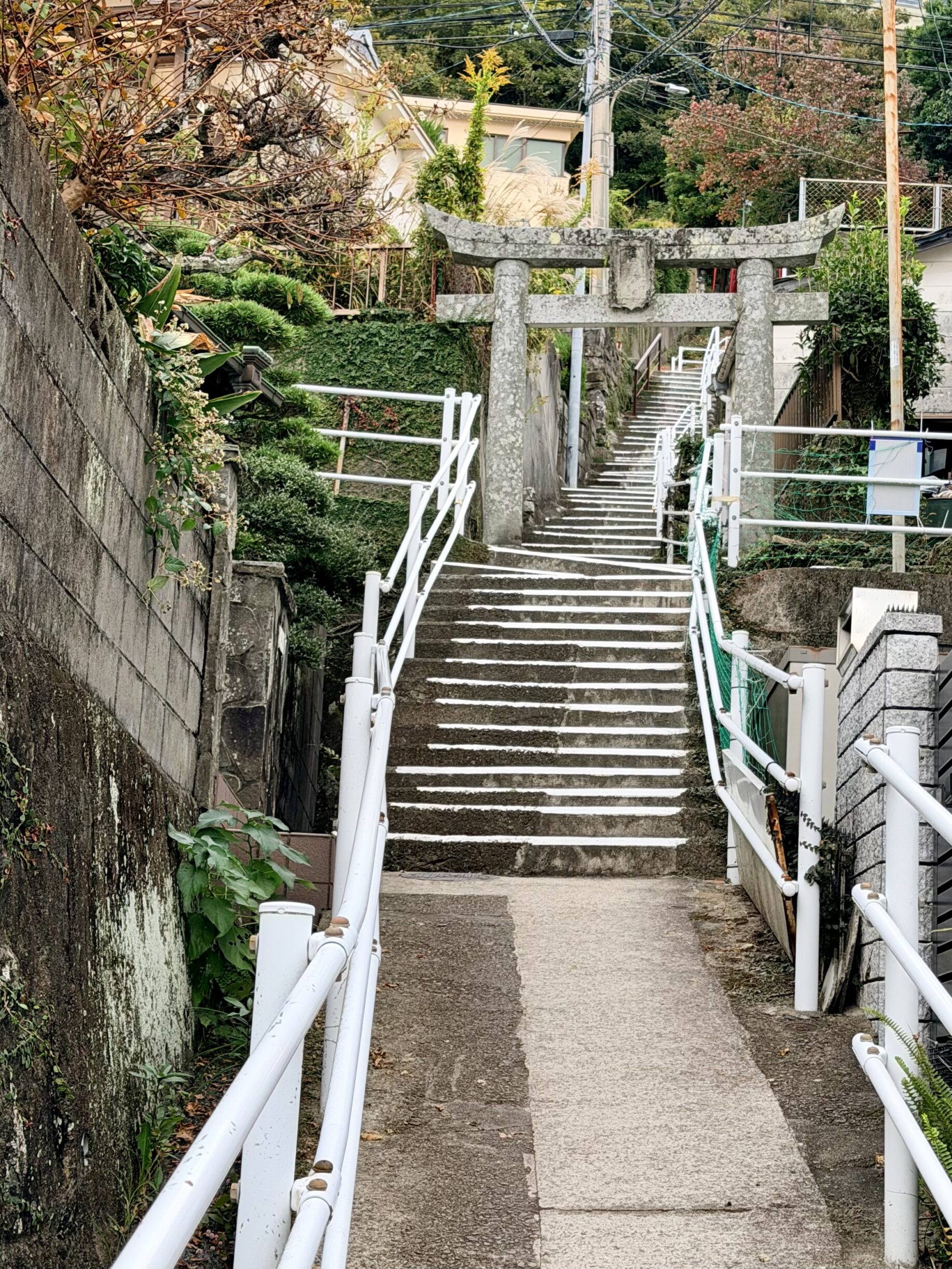 Wir sind halb Nagasaki abgelaufen, inklusive Berg, Stufen, Hügel, Treppen und haben ein paar sehr „originelle“ Wohngegenden gesehen. Ein bisschen Flodder-Vibe, ein bisschen verwinkeltes Altstadtgefühl, zwischen Grabsteinen, Müllhalden und Bruchbuden.