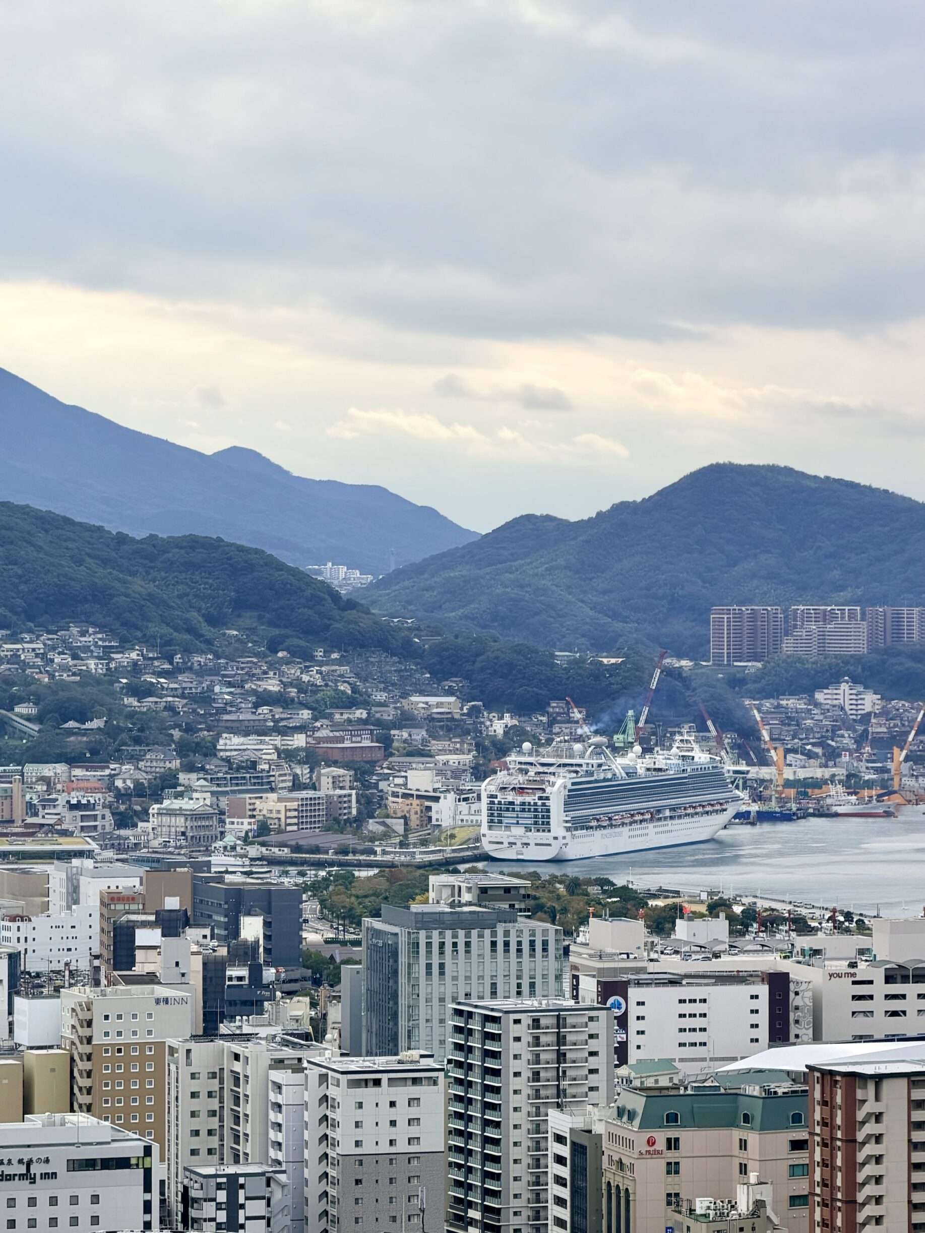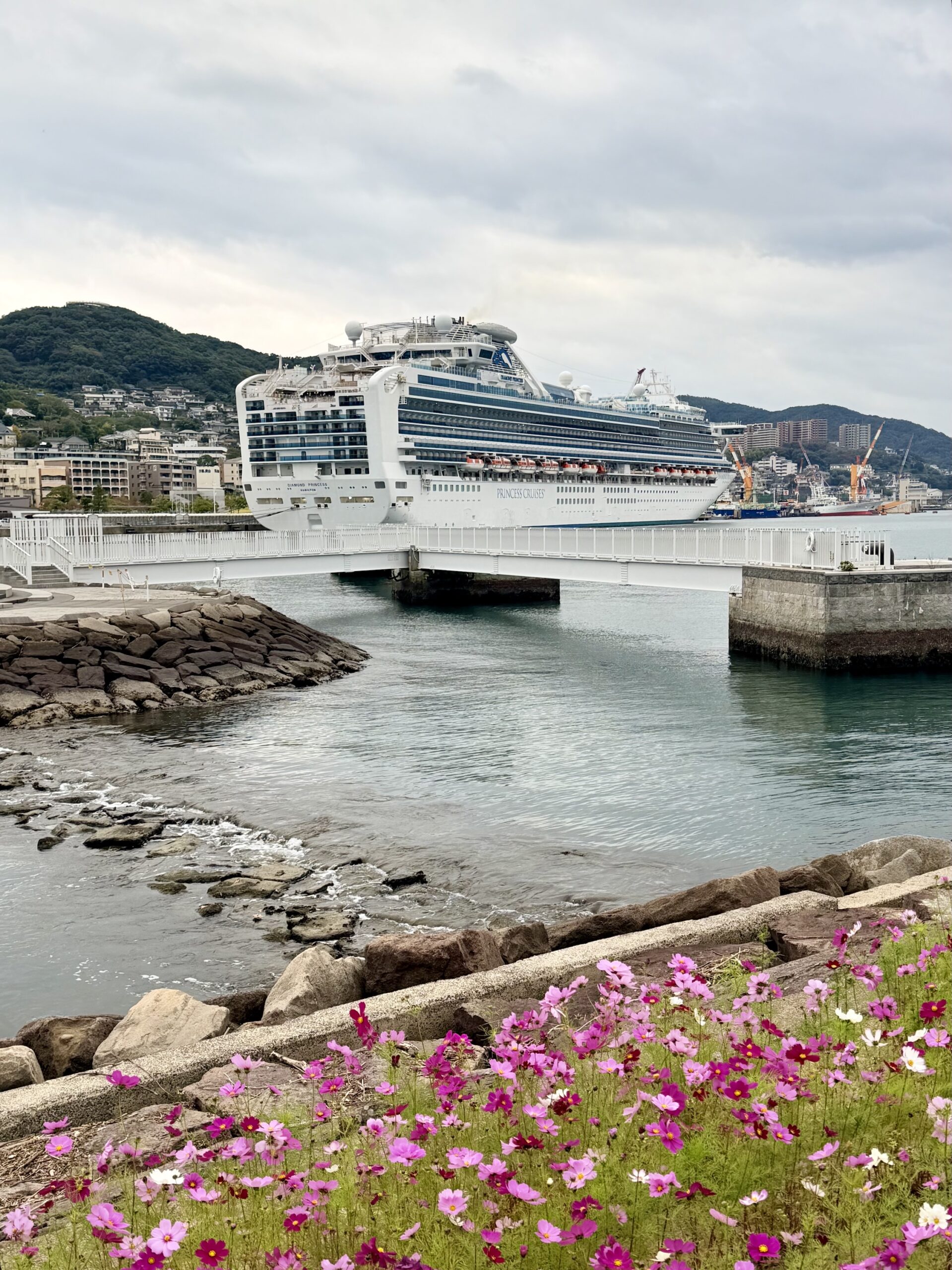 Hafen & Park: Die japanische Copa Kagrana und den Nagasaki Seaside Park, wo wir neben Herbstlaub auch einen Blick auf die Diamond Princess, jenes Kreuzfahrtschiff, das zu Covid-Zeiten wochenlang vor Japan festhing, geworfen haben.