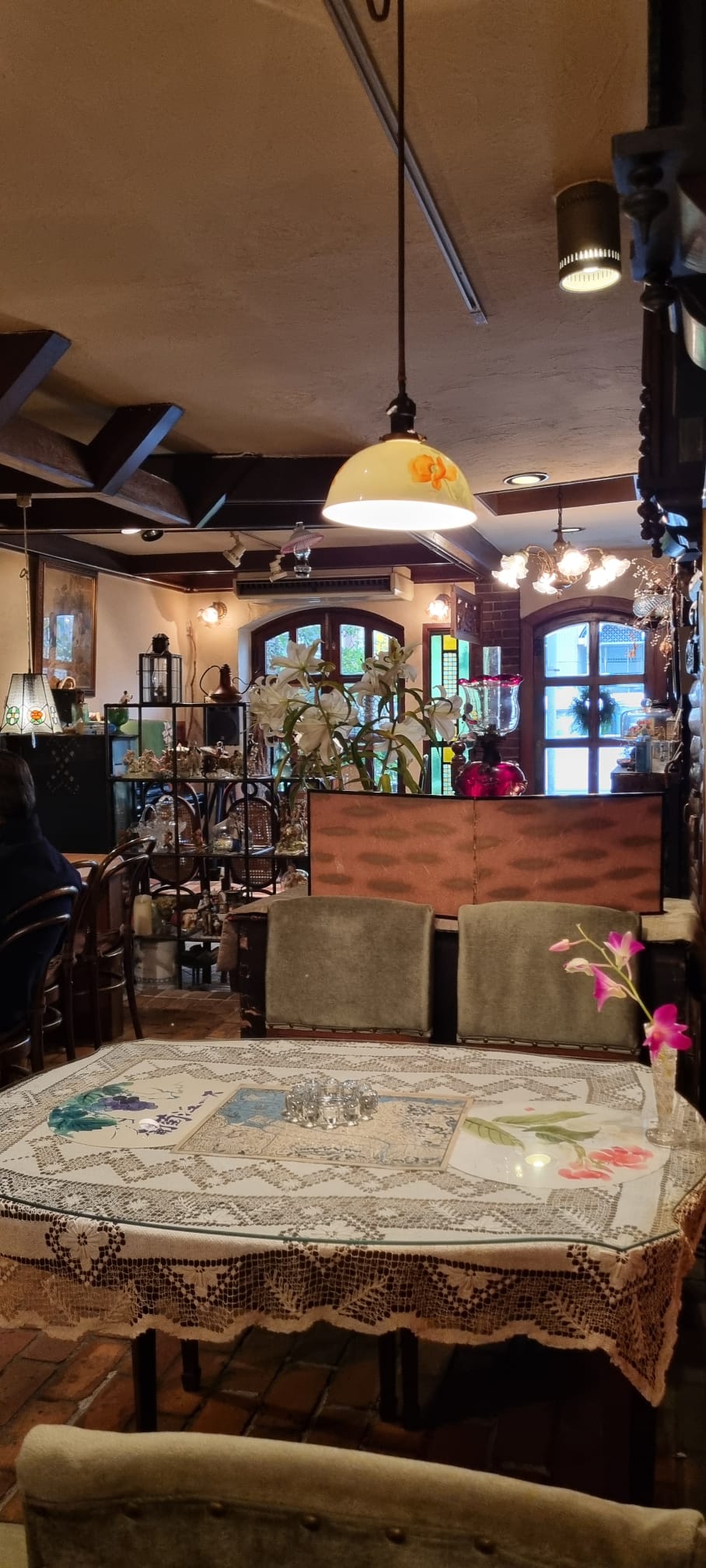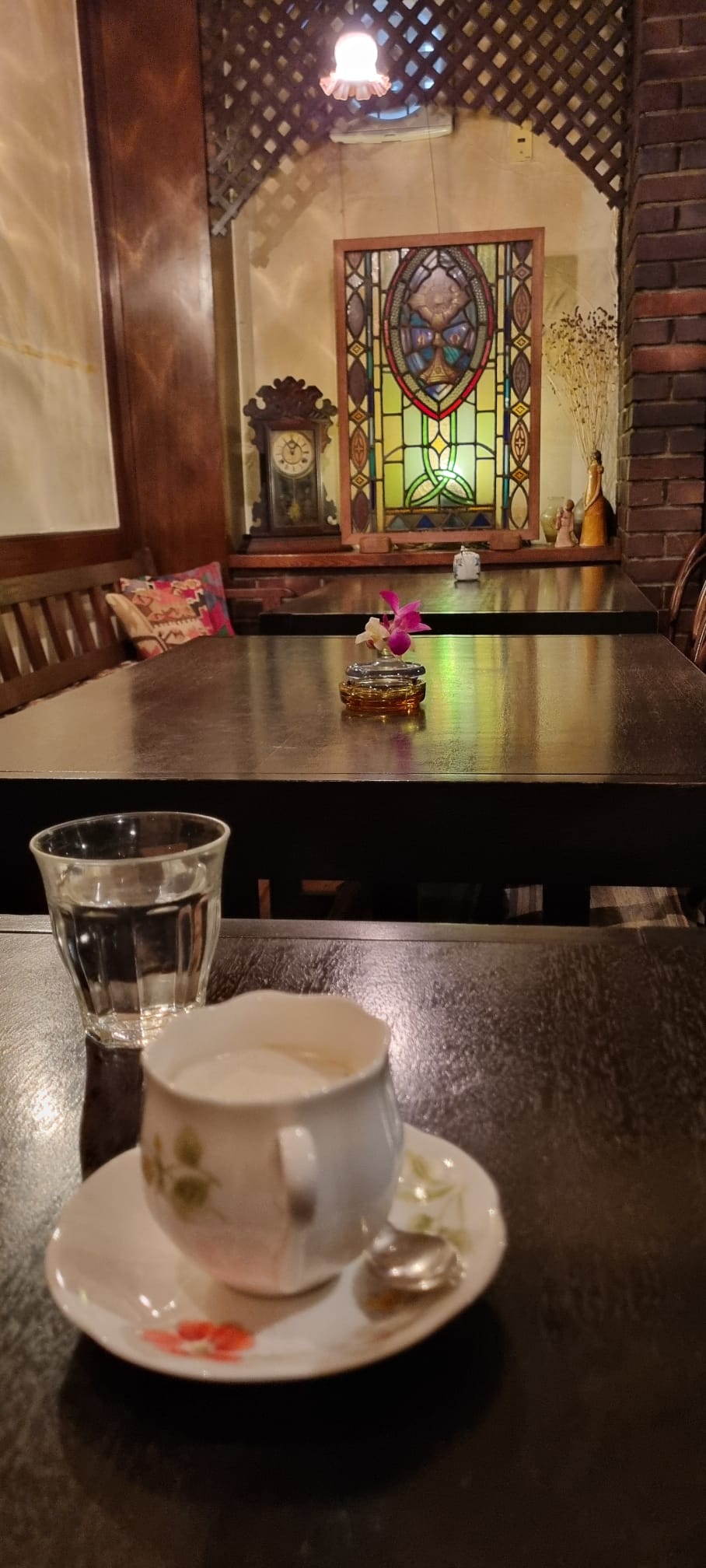 In Nagasaki angekommen war es uns plötzlich relativ frisch. Nicht wirklich kalt-kalt, aber wir sind von den letzten Tagen etwas verwöhnt-wöhnt. Also rein ins nächstbeste Kaffeehaus, eines dieser urigen, alten Dinger, bei denen die Zeit irgendwo in den 60ern beim Malzkaffee stehen geblieben ist. Mein Kaffee war so dünn, dass ich den Tassenboden sehen konnte. Fritz hatte einen „Wiener Kaffee“ (Japanisch: Wien Cohii), und ich glaube, der Schlagobers war das Einzige, was den Geschmack gerettet hat. haha