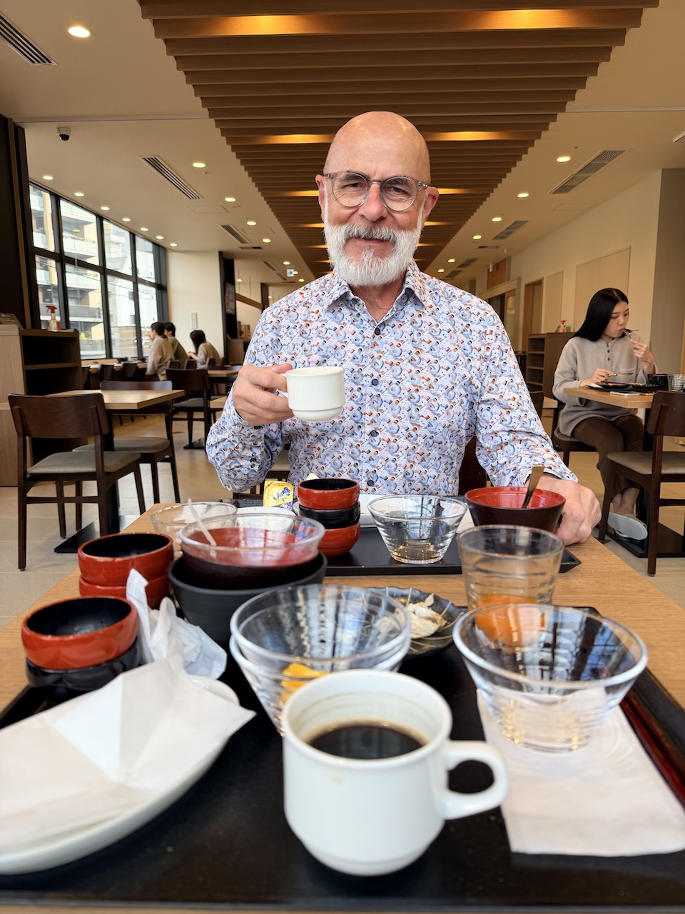 Der Morgen begann wie im Schlaraffenland auf japanisch: ein Buffet, das so riesig war, dass man eigentlich einen eigenen Teller-Strategieplan bräuchte. Man weiß oft erst nach dem Lesen der Schilder, was man da gerade in der Schüssel hat und manchmal auch erst wie man es isst.