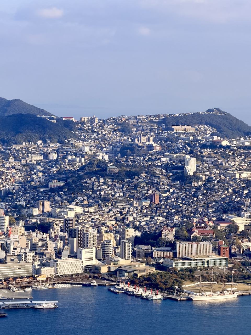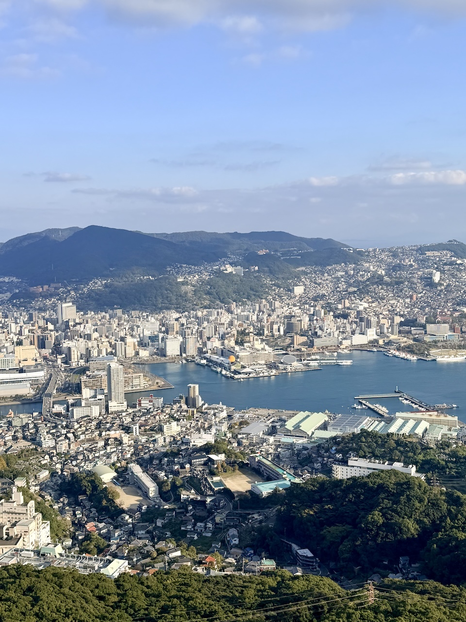 Vom Peace Park ging es wieder zu Fuß weiter. Diesmal zur Talstation der Nagasaki Ropeway. Die Fahrt nach oben zum Inasayama Park war goldrichtig: Sonne, blauer Himmel, perfekter Ausblick und ein absoluter Gewinn.