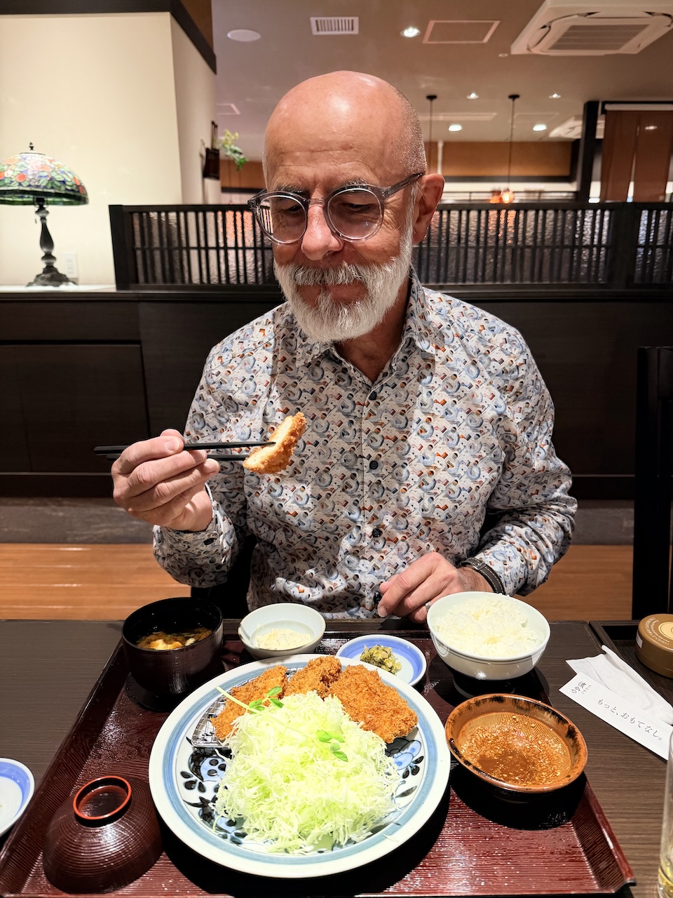 Ich glaube, man sieht auf dem Foto, wie sehr ihn diese drei Sorten Katsu innerlich zum Weinen gebracht haben, vor Freude natürlich.