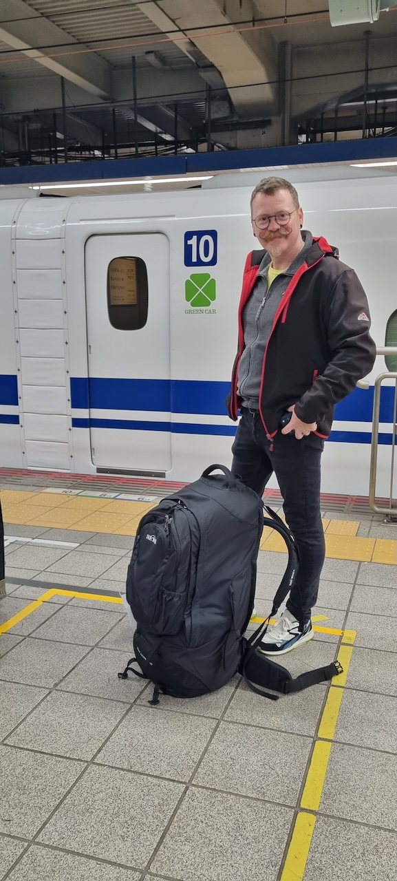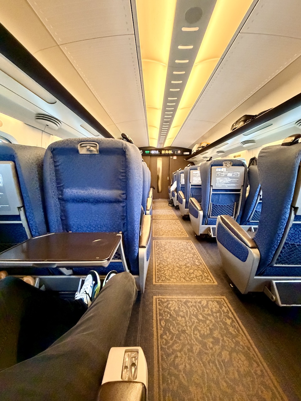 Von AVIS ging es mit dem Taxi weiter zum Bahnhof Hakata. Schon witzig, dass wir erst 105 km zurückgurken, nur um dann wieder mit dem Shinkansen durch Kumamoto zu fahren, wo wir gerade hergekommen sind. Aber summa summarum war es günstiger: weniger Maut (die allein hätte 53 € ausgemacht!) und keine Extragebühr für Einwegmiete. Außerdem wollten wir heute mal First Class ausprobieren. 80 € pro Person und die haben sich echt rentiert. Rückblickend hat sich der Mietwagen nur für Beppu und den Mount Aso gelohnt. Für alles andere hätten auch die Öffis gereicht. Bereuen tue ich es aber trotzdem nicht, denn das Autofahren wurde irgendwie zu einem lustigen Abenteuer, auch wenn ich mir vorher ins Hoserl gemacht habe. haha