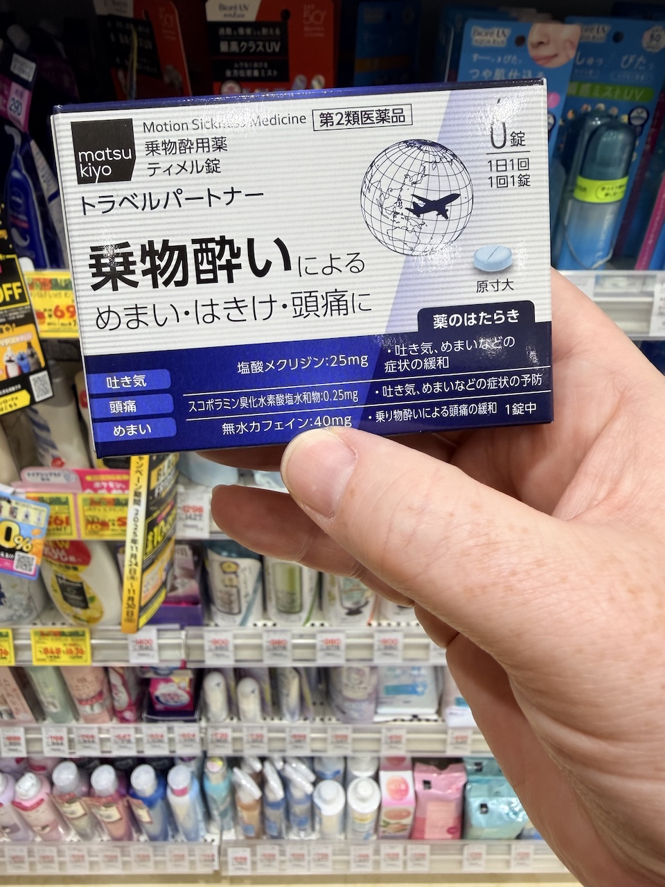 Als wir losgefahren sind, waren wir noch in der geschützten Bucht von Kagoshima. Ich bin sogar in die Badewanne gesprungen, weil es wirklich smooth und angenehm war. Fritz hatte dann beim Duschen schon ein wenig mehr haltungstechnische Probleme, denn kaum eine Stunde unterwegs und das große Schaukeln ging los. Nach einer halben Stunde Wellenritt haben wir uns lediglich kurz angeschaut und genickt. Ich habe die Reisemedikamente geschnappt und wir haben uns jeweils eine Sicherheitstablette eingeworfen.