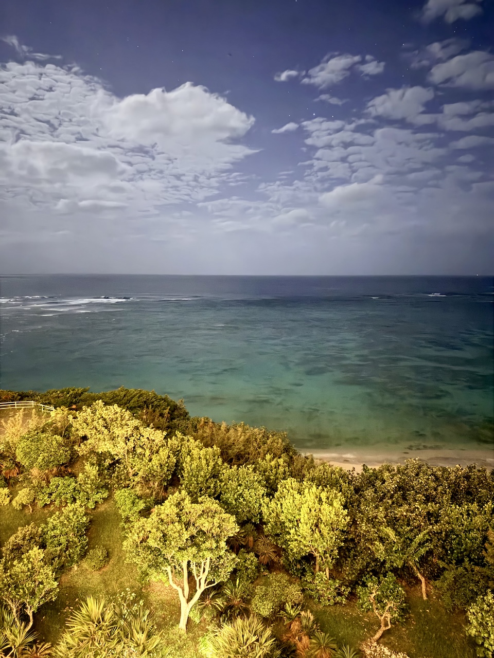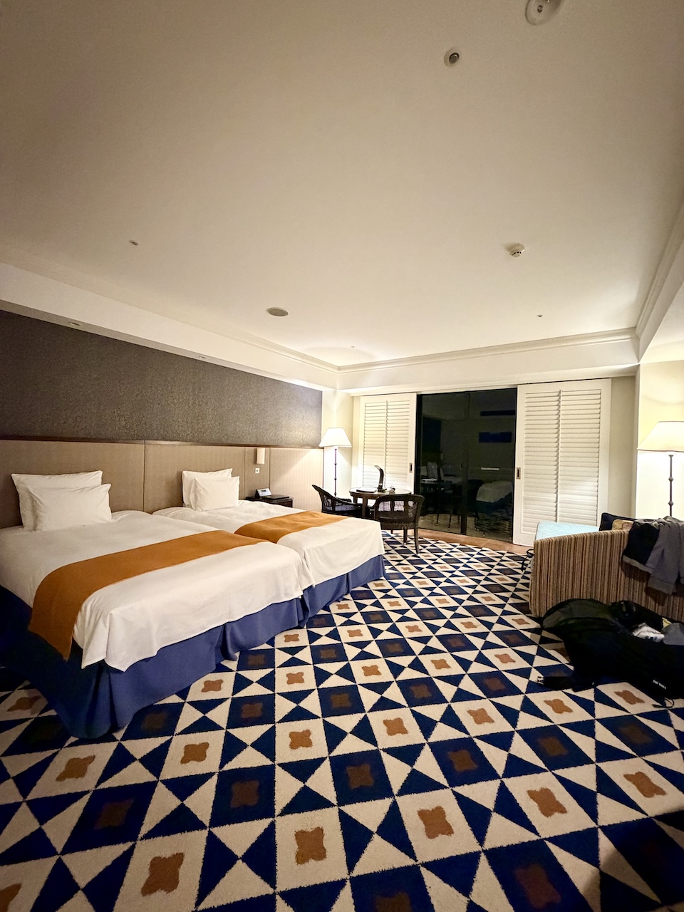 Kurz nach 19 Uhr sind wir dann in Naha angekommen und mit dem Taxi zum Hotel gefahren. Das ging flott und wir konnten schnell einchecken. Wir haben ein Zimmer mit Meerblick und ich hab mit einer Langzeitbelichtung schon mal geschaut, wie es aussieht. Zum Glück müssen wir uns morgen keinen Wecker stellen, denn wir sind auf der Seite des Sonnenuntergangs. Wir hatten heute Mittag zwar was auf dem Schiff gegessen, aber jetzt hatten wir doch noch Hunger. Es gibt vier Restaurants im Hotel, aber wir waren um 21:03 Uhr dort. Last Order ist hier 21:00 Uhr und ja, Japan nimmt sowas SEHR genau. Zum Glück gibt es einen kleinen Shop im Hotel, also haben wir uns noch Fertigramen, Bier und Snacks geholt. Das muss heute reichen. Jedenfalls wackelt jetzt beim Tippen dieses Blogposts immer noch der Untergrund ein wenig. Ich bin gespannt, wie lange es dauert, bis wieder alles wackelfrei ist. Haha