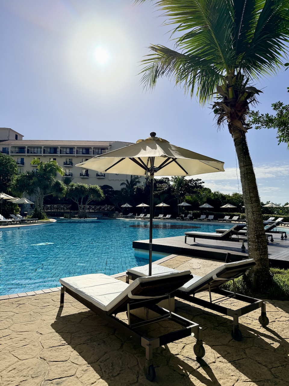 Als erstes sind wir nach dem Frühstück eine Runde durchs Hotel, den Garten und am Strand entlang gewatschelt. Die Anlage ist riesig, sehr schön gepflegt und ruhig gelegen.