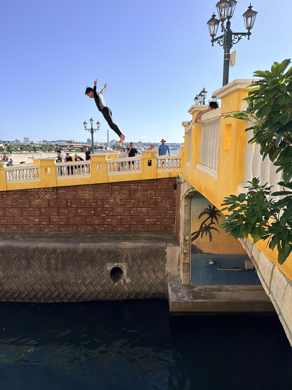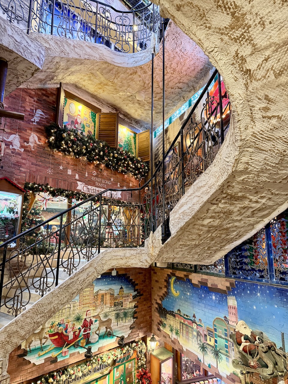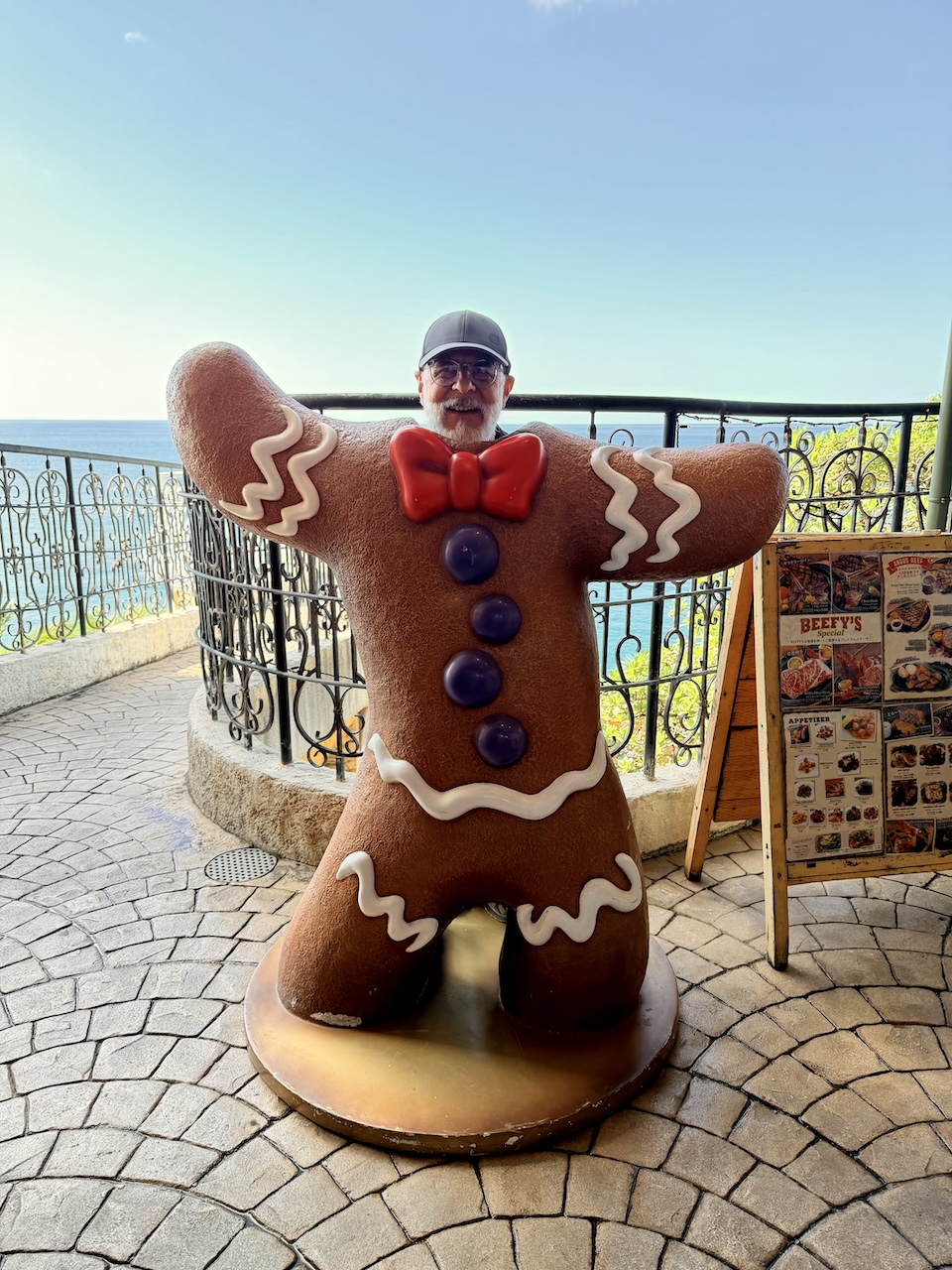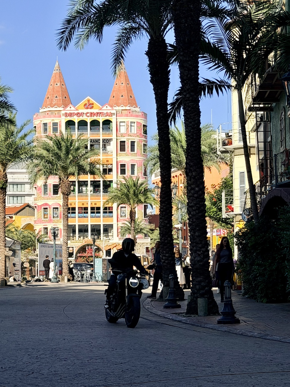 Vom Hotel ging es für uns ins American Village. Dieser Ort ist ein faszinierendes Kuriosum. Er entstand rund um die ehemaligen US-Militärbasen, die hier jahrzehntelang das Stadtbild geprägt haben und zum Teil noch immer prägen. Heute ist das American Village eine bunte Mischung aus künstlicher Strandpromenade, Popkultur, amerikanischem Flair, Neonreklamen, Boutiquen, Burgerbuden, Streetfood und teilweise ziemlich kitschigen, aber irgendwie liebenswürdigen Fotospots. Ein bisschen fühlt es sich an wie ein Freizeitpark ohne Fahrgeschäft. Es ist voll mit Souvenirshops, die wirklich alles verkaufen, was nicht bei drei auf den Palmen ist. Wir sind gemütlich herumgebummelt, haben einiges gekauft, haben uns ein eiskaltes Orion Bier, DIE Biermarke hier auf Okinawa, gegönnt und natürlich das berühmte Blue Seal Eis probiert. Und wow… ich hab viel darüber gelesen, aber jetzt weiß ich, dass es wirklich ultra gut schmeckt. Selbst Fritz meinte, dass es das beste Eis war, das er dieses Jahr gegessen hat.