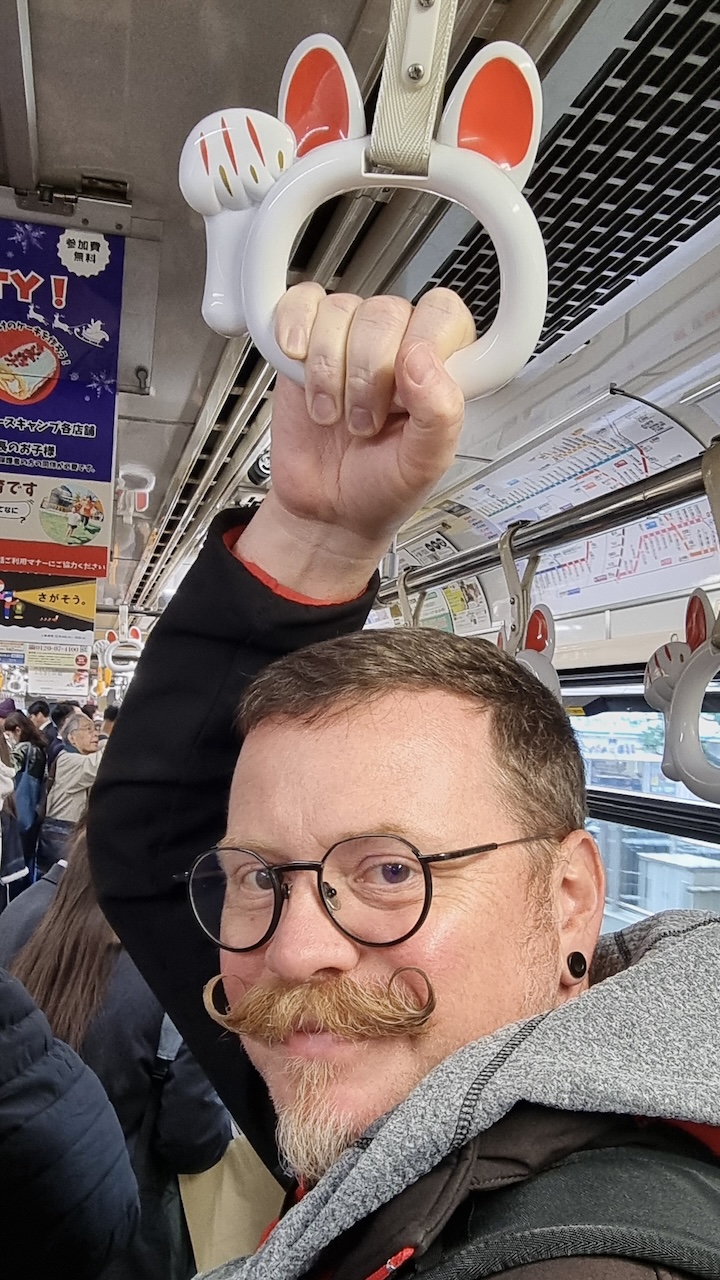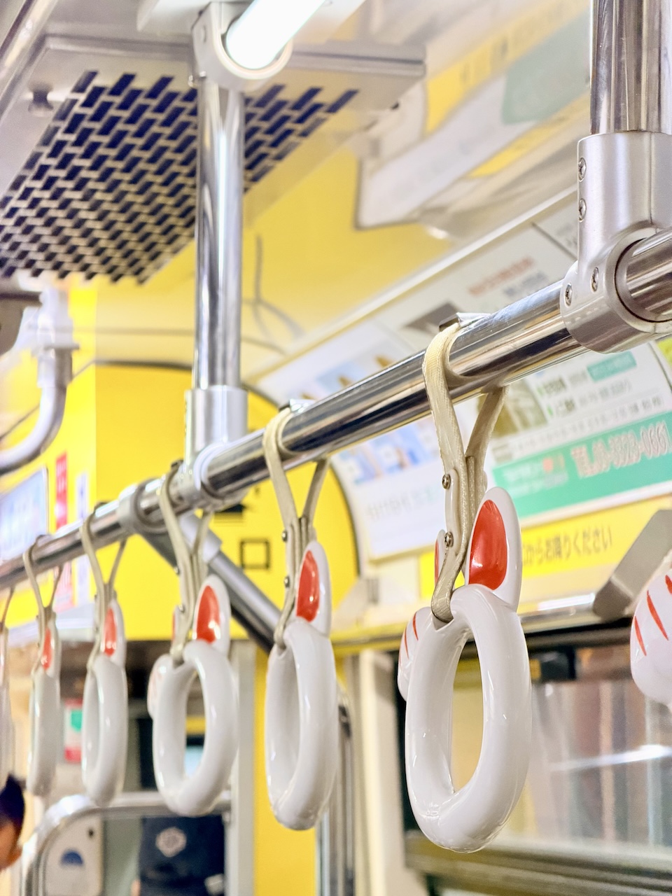 Vom Ueno Park sind wir dann mit der U-Bahn nach Shibuya weiter. Shibuya Crossing geht immer, denn das Treiben dort ist jedes Mal aufs Neue faszinierend. Wir waren dort auch noch Ramen essen, ein wenig bummeln und sind dann zum Katzentempel „Gotokuji“ aufgebrochen. Sogar der Zug dorthin ist kawaii (=süß) mit eigenen Haltegriffen. Gotokuji ist der Tempel, der als Geburtsstätte der berühmten Winkekatzen (Maneki-neko) gilt. Tausende kleine weiße Katzenfiguren stehen dort auf Regalen, in Nischen und unter Bäumen. Es ist ein bisschen surreal, ein bisschen kitschig, aber vor allem wahnsinnig charmant. Die Stimmung dort ist ruhig und fast meditativ und ich muss sagen, die vielen Katzen und das in Kombination mit dem Herbstlaub haben es mir echt angetan. Ich glaube, dass wir auch genügend Katzen-Voodoo gemacht haben, damit uns die Elvriiiiiede wohlgesonnen ist. 🙂