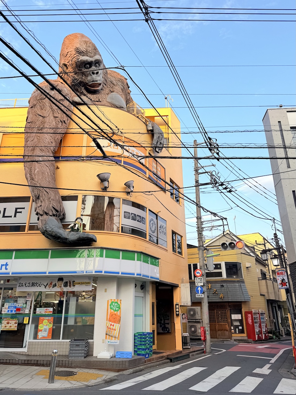 Die Gegend rund um Setagaya liebe ich sowieso sehr. Müsste ich nach Tokyo ziehen, wäre das definitiv mein Lieblingsviertel. Ich fürchte nur, dass es auch relativ teuer ist. Setagaya liegt keine 20 Minuten von Shibuya südwestlich des Stadtzentrums und ist eines der beliebtesten Wohngebiete Tokyos. Voller kleiner, enger Gassen, hübscher Häuser, lokaler Cafés, winziger Bars und Boutiquen. Es wirkt viel weniger hektisch als die großen Zentren und hat fast schon ein dörfliches Flair, aber halt mitten in der Millionenmetropole. Genau diese Mischung liebe ich dort so sehr. Zufällig haben wir dann dort auch noch das Gorilla Building gefunden. Ein Gebäude, auf dessen Fassade ein überdimensionaler Gorilla hängt, als würde er gleich King-Kong-mäßig irgendwo raufklettern. Völlig absurd, aber herrlich witzig.
