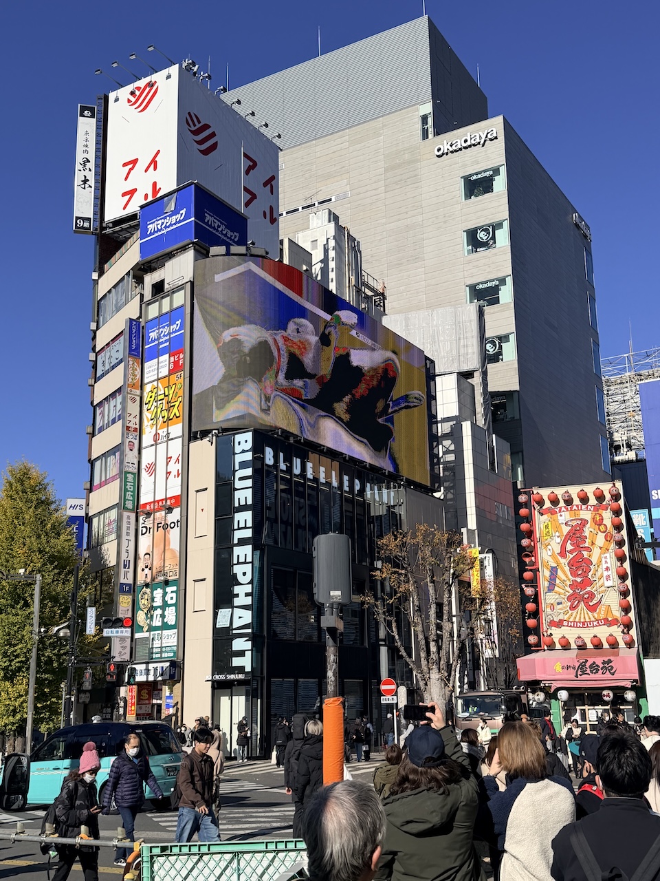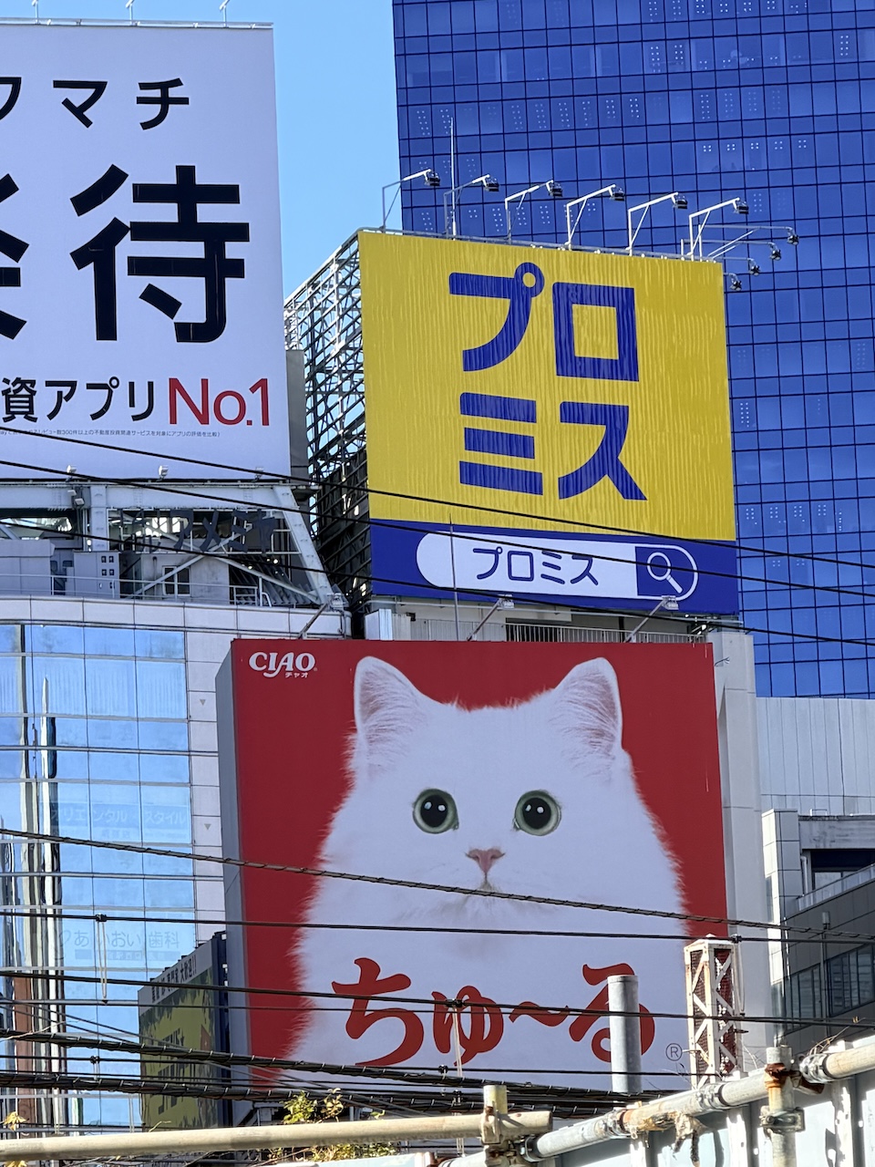 Nach dem Besuch im Park fuhren wir mit der U-Bahn nach Shinjuku. Dieser Bahnhof ist eine Welt für sich. Ich glaube, es gibt dort mehr Ausgänge als ich Haare am Kopf habe. Natürlich kamen wir, wie jedes einzelne Mal, auf der komplett falschen Seite raus. Haha. Draußen geht es dann aber leichter. Wir sind zu unserem üblichen Shinjuku-Programm spaziert: 3D-Katze, Godzilla, ein bissl herumlaufen, ein bissl staunen, ein bissl lachen.