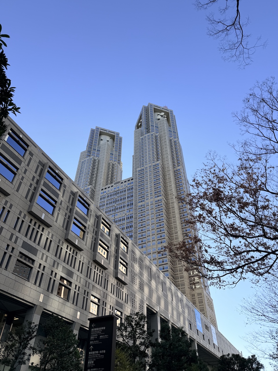 Unser Ziel war das Tokyo Metropolitan Government Building und wir fanden es eigentlich recht zackig. Das Gebäude ist eines der bekanntesten Wahrzeichen Shinjukus. Zwei markante Zwillingstürme, die ein wenig so aussehen, als wären sie aus Legosteinen gebaut worden. Im 45. Stock gibt es ein kostenloses Observation Deck und genau dort wollten wir hin. Der Blick von oben ist wirklich atemberaubend: Tokyo breitet sich wie ein endloses Meer aus, ein urbanes Teppichmuster bis zum Horizont, und man versteht endgültig, warum diese Stadt einfach alles sprengt, was man sich vorher unter „groß“ vorgestellt hat. Zu unserer Freude hat sich auch Mount Fuji ein wenig aus den Wolken heraus gezeigt.