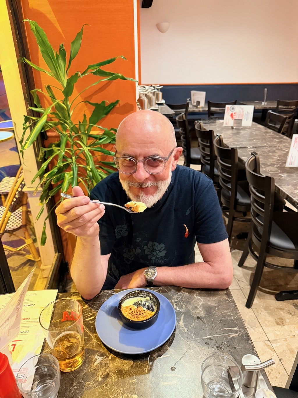 Kulinarisch wurde es am Abend dann auch nochmal französisch. Fritz hat sich ein ordentliches Entrecôte ins Getriebe gestellt und nach der Crème brûlée sah er aus wie ein sehr, sehr zufriedener Mensch. Ich hingegen habe mir nach Fish&Chips mit einem Negroni den Rest gegeben.