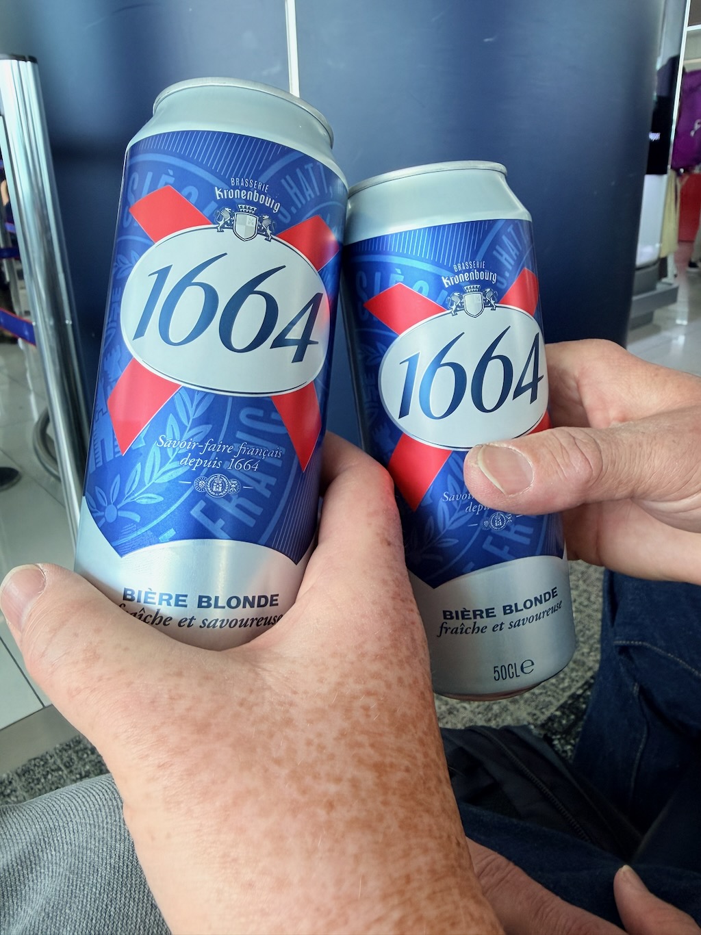 Der Wartebereich war klein, ziemlich heiß, stickig, gut gefüllt und bot jetzt nicht unbedingt die spannendste Unterhaltung. Nachdem der Wartebereich hinter der Sicherheitskontrolle war, konnte man auch nicht mehr wirklich problemlos zurück gehen. Die Zeit zog sich ein wenig und selbst ich bin irgendwann schwach geworden und habe zu einem blonden Dosenbier gegriffen. Man muss nehmen, was man kriegt. haha